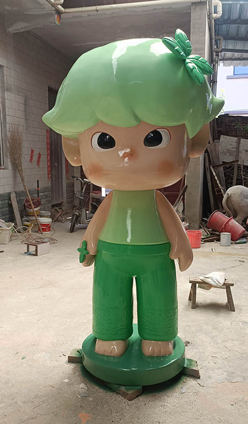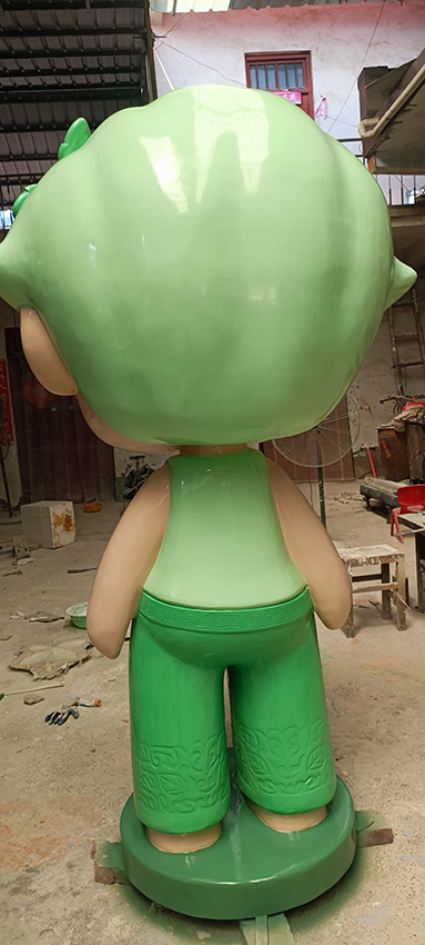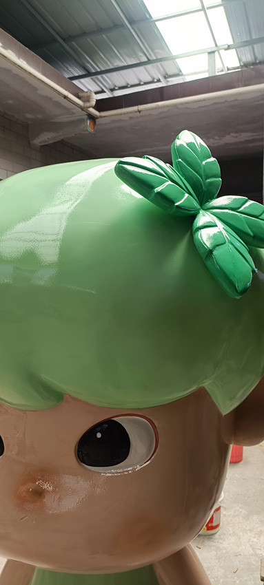 新时代新征程,河派艺术墙绘团队成功为某餐饮企业制作吉祥物。材料:玻璃钢。彩绘材料:汽车金属漆。制作工艺:泥胎翻制石膏磨具。此作品为该企业形象IP,名称为“荆芥精灵。